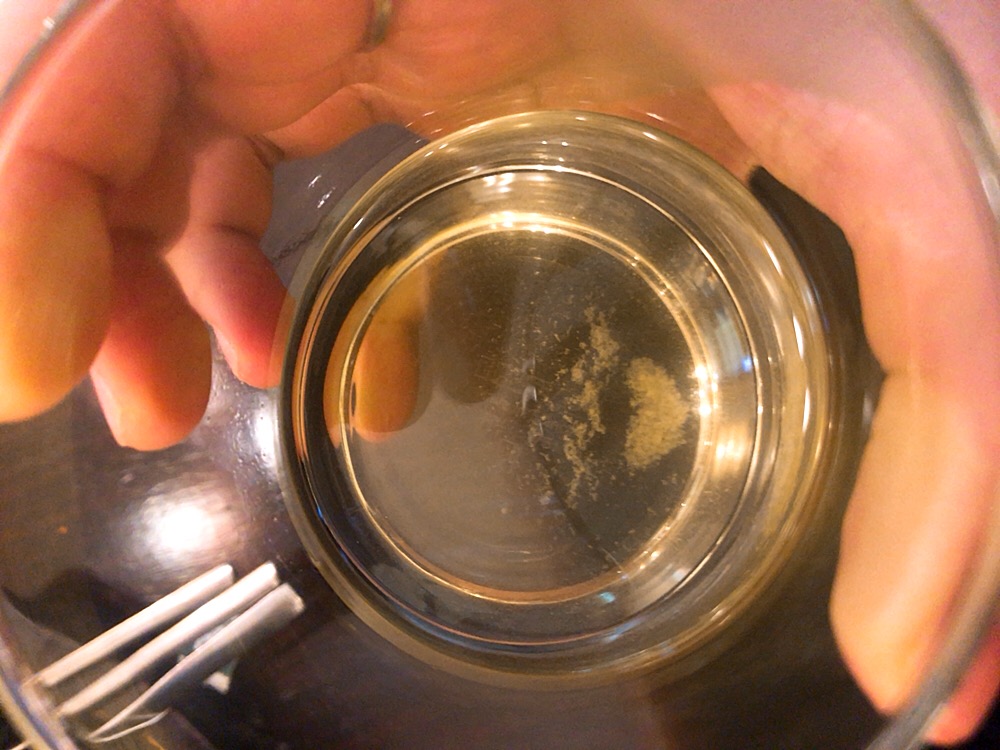싸구려 생수물을 전기포트에 끓여서 따랐을때, 단 한잔 분량의 물에 이만큼의 석회가 가라앉습니다.